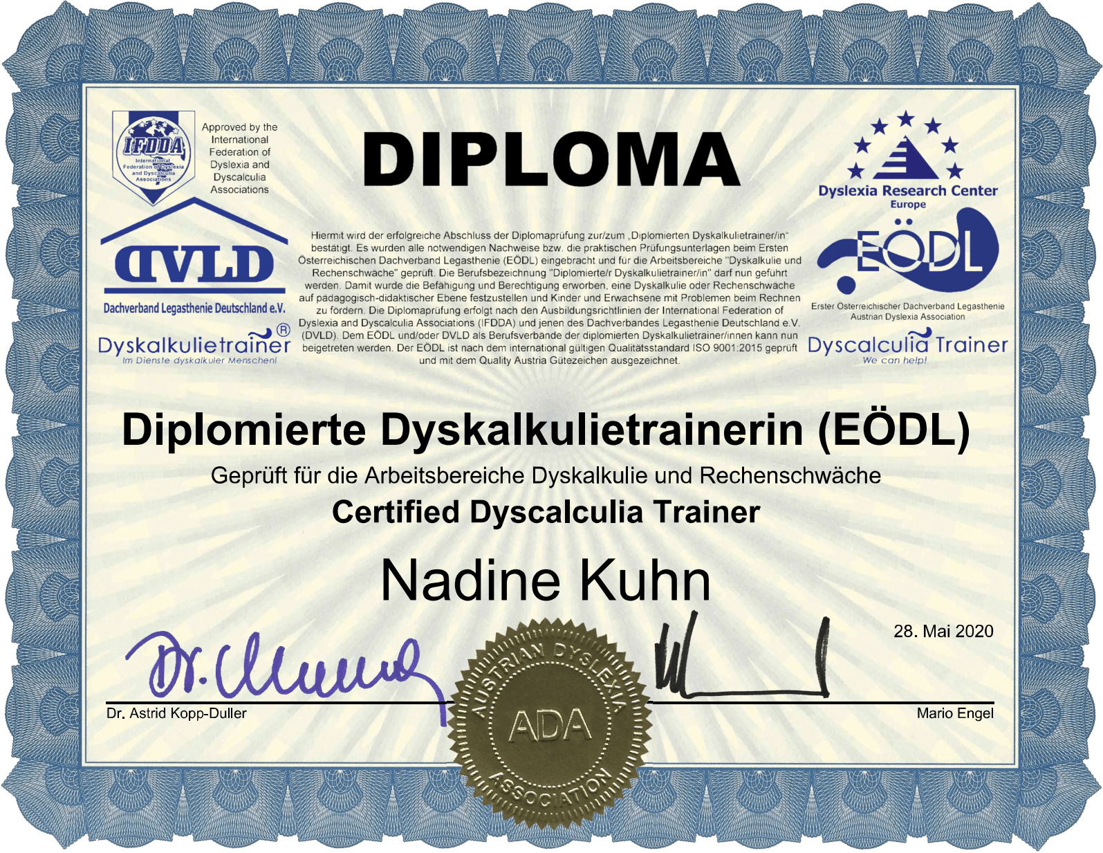 Mitglied beim Ersten Österreichischen Dachverband Legasthenie - Dyskalkulie (EÖDL)
